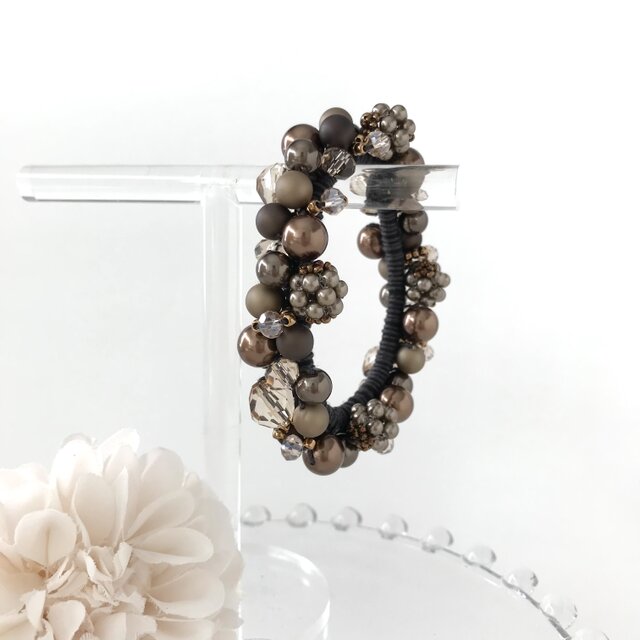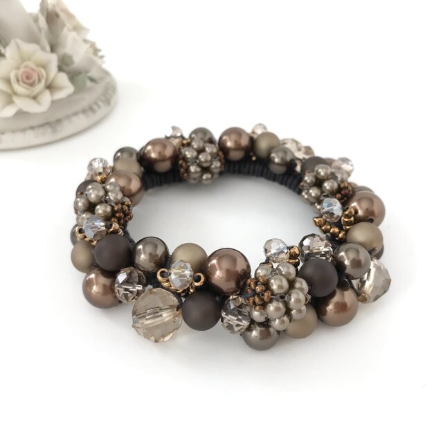 シュシュ ヘアゴム ビーズ スモーク/ブラウン シュシュ ヘアゴム ビーズ スモーク ホワイトブラウン